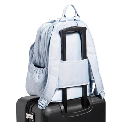 Generously sized for your on-the-go lifestyle, we’ve equipped this fan favorite with smart functionality like comfort padded shoulder straps and a secure, padded laptop compartment help you keep your focus on carving out your bright future. Details: Our denim is a cotton/polyester blend. Exterior features two side slip pockets, a u-shaped front zip compartment with a front zip pocket and a hidden back zip pocket. Front u-shaped zip compartment contains four slip pockets, three pen slips and an ID window. Main compartment features two mesh slip pockets. Padded laptop compartment. Padded shoulder straps are shaped for optimum comfort on body. Back panel is padded, and features a shaped trolley sleeve. Zip closures. Accommodates up to a 15″ laptop. Capacity 25 L. Care Tips: Spot clean with mild detergent and a soft, damp cloth, rinse thoroughly; lay flat to dry