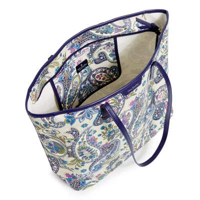 Perfect for all of your everyday adventures, this large coated-canvas tote has room for everything. Take it to work, school, vacation – wherever! Details: 100% cotton with polyurethane coating and trim. Interior features a hanging slip pocket. Zip closure. Care Tips: Spot clean with mild detergent and a soft, damp cloth, rinse thoroughly; lay flat to dry