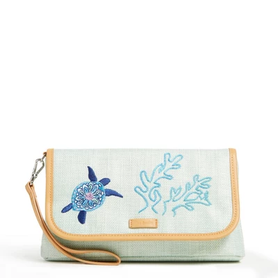 Stashed inside your beach bag or shown off solo, this straw wristlet was designed with your vacation (or staycation!) in mind. Details: Straw. Embroidered detail. Provides RFID protection for credit and debit cards. Remove wristlet strap to carry as a clutch. Interior features three card slip pockets and a zip pocket. Magnetic snap closure. Care Tips: Spot clean with mild detergent and a soft, damp cloth, rinse thoroughly; lay flat to dry