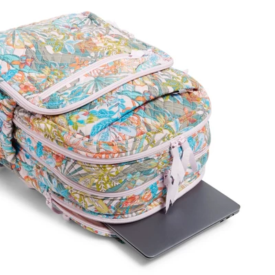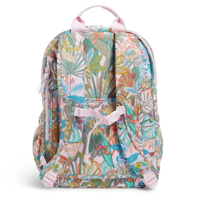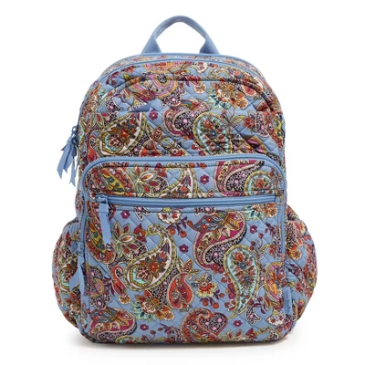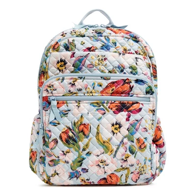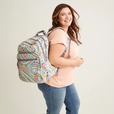 There’s no better way to accommodate your day than by carrying a colorful cotton Campus Backpack. It truly is the one we can’t live without — and it was recently redesigned to be even better with even more padding in the back and straps and a new shape specially designed to accommodate a woman’s shape. Details: Exterior features a front zip compartment with a zip pocket, two side slip pockets and a hidden back zip pocket. Front zip compartment offers four slip pockets, three pen slips and an ID window. Main compartment features one large slip and two mesh slip pockets. Padded laptop sleeve. Padded shoulder straps are shaped for optimum comfort on body, and feature an adjustable chest strap buckle for weight distribution. Padded back panel and trolley sleeve. Zip closures. Accommodates up to a 15″ laptop. Capacity 30 L. Care Tips: Machine wash cold, gentle cycle, only non-chlorine bleach when needed; line dry