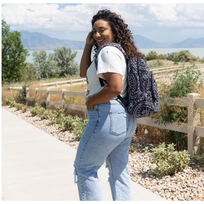 A powerhouse of a pack for on-campus and off, our bestselling backpack is equipped with so much smart functionality, you’ll wonder what you ever did without it! Refreshed to better fit a woman’s curves, the new ergonomic shape and padded back panel and straps deliver the ultimate in comfort. A main compartment features two mesh slip pockets for tech and snacks and the exterior is loaded with custom pockets, too. There’s also a secure laptop pocket to protect your tech. In lightweight microfiber in our versatile, standout solids, you’re sure to ace your back-to-school style. Details: Microfiber is lightweight, solid-colored polyester. Exterior features two zip pockets (one front and one back) and two side slip pockets. Front U-shaped zip compartment features four slip pockets, three pen slip pockets and an ID window. Main compartment features two mesh slip pockets. Laptop compartment. Padded shoulder straps are shaped for optimum comfort on body. Back panel is padded, and features a shaped trolley sleeve. Zip closures. Accommodates up to a 15″ laptop. Capacity 25 L. Care Tips: Machine wash cold, gentle cycle, only non-chlorine bleach when needed; line dry