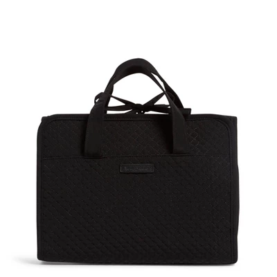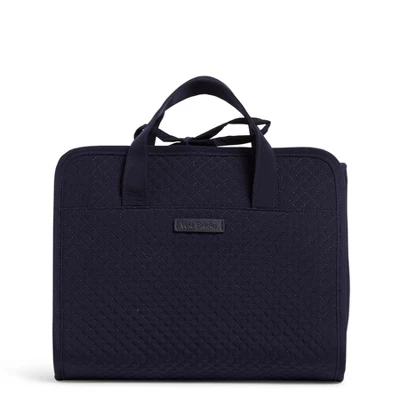 It’s easy to get the “hang” of looking good (and staying neat) with this accessory. Lotions, powders and sprays all have a home here, thanks to the roomy, gusseted bottom pocket. It’s ideal for slipping things into your suitcase or hanging it near the vanity. Details: Microfiber is lightweight, solid-colored polyester. Metal hanger tucks away. Top zippered, quilted compartment plus two taffeta-lined, clear plastic compartments. Gusseted, plastic-lined bottom compartment opens wide when unzipped. Tie closure. Care Tips: Machine wash cold, gentle cycle, only non-chlorine bleach when needed; line dry