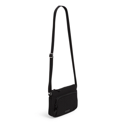 This cute crossbody is sized just right for all the essentials. The back slip pocket is the ideal place for keys and a phone, while the zip-top closure keeps other everyday must-haves secure. Details: Microfiber is lightweight, solid-colored polyester. Provides RFID protection for credit and debit cards. Exterior features a slip pocket. Zip compartment features one bill slip, three cards slips and an ID window. Main compartment features a zip pocket. Zip closure. Care Tips: Machine wash cold, gentle cycle, only non-chlorine bleach when needed; line dry