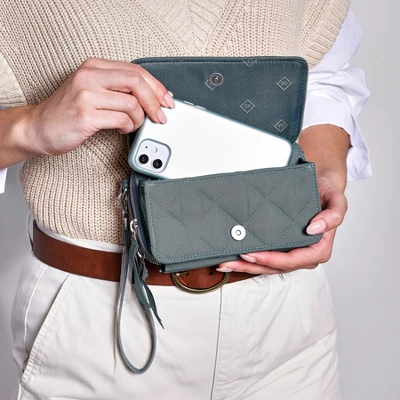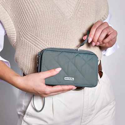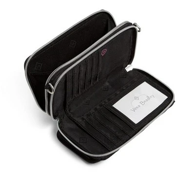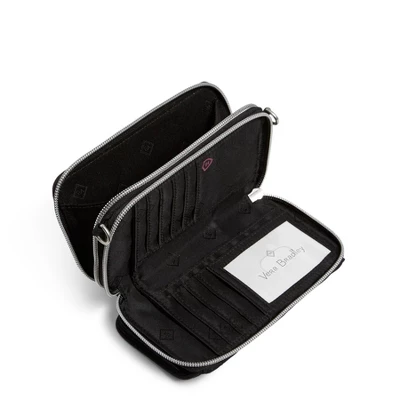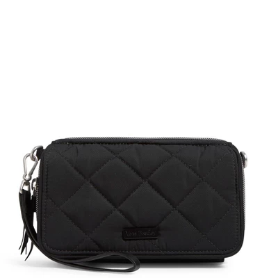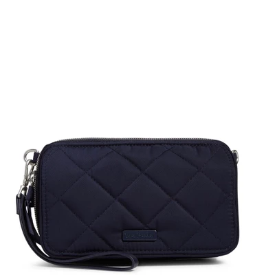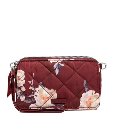 The name says it all! The All in One is one easy, hands-free bag for all you do. Our best-selling, versatile crossbody converts to a wallet and a wristlet with the switch of a strap and built-in RFID technology protects your credit and debit cards from data theft. In water-repellent performance twill, your crossbody is also protected from unwelcome weather and surprise spills. Details: Performance twill fabrication is quilted, sleek, water-repellent polyester. Provides RFID protection for credit and debit cards. Exterior features a phone slip pocket and a zip pocket. Interior features 10 card slips, four slip pockets, one bill pocket, one interior back compartment pocket and one ID window. Zip and magnetic closures. Care Tips: Spot clean with mild detergent and a soft, damp cloth, rinse thoroughly; lay flat to dry